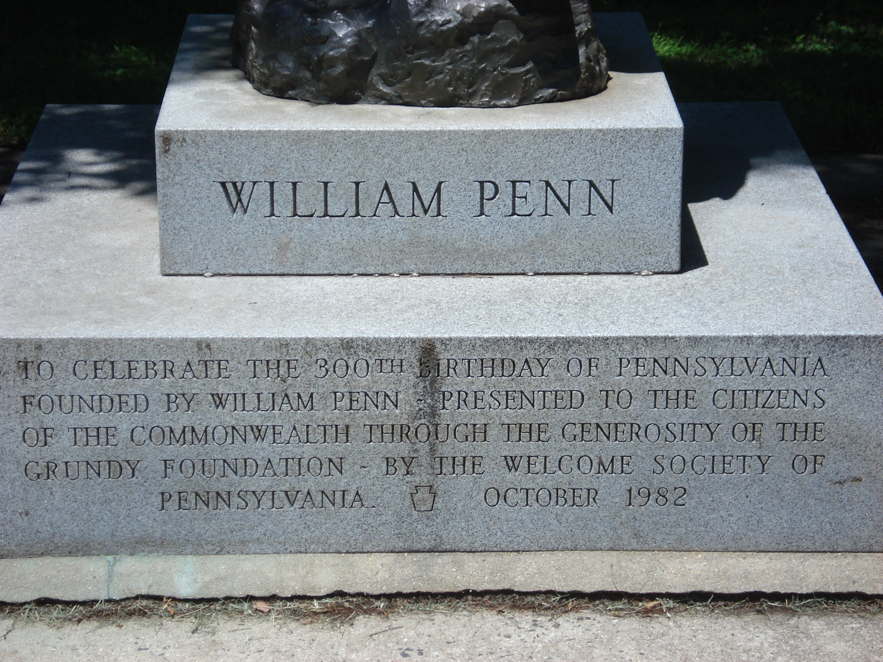 Inscription under statue of Penn.